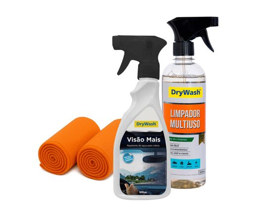 Kit Promocional Visão Mais + Limpador Multiuso DryWash 500mL c/ 2x Microfibras 30x30